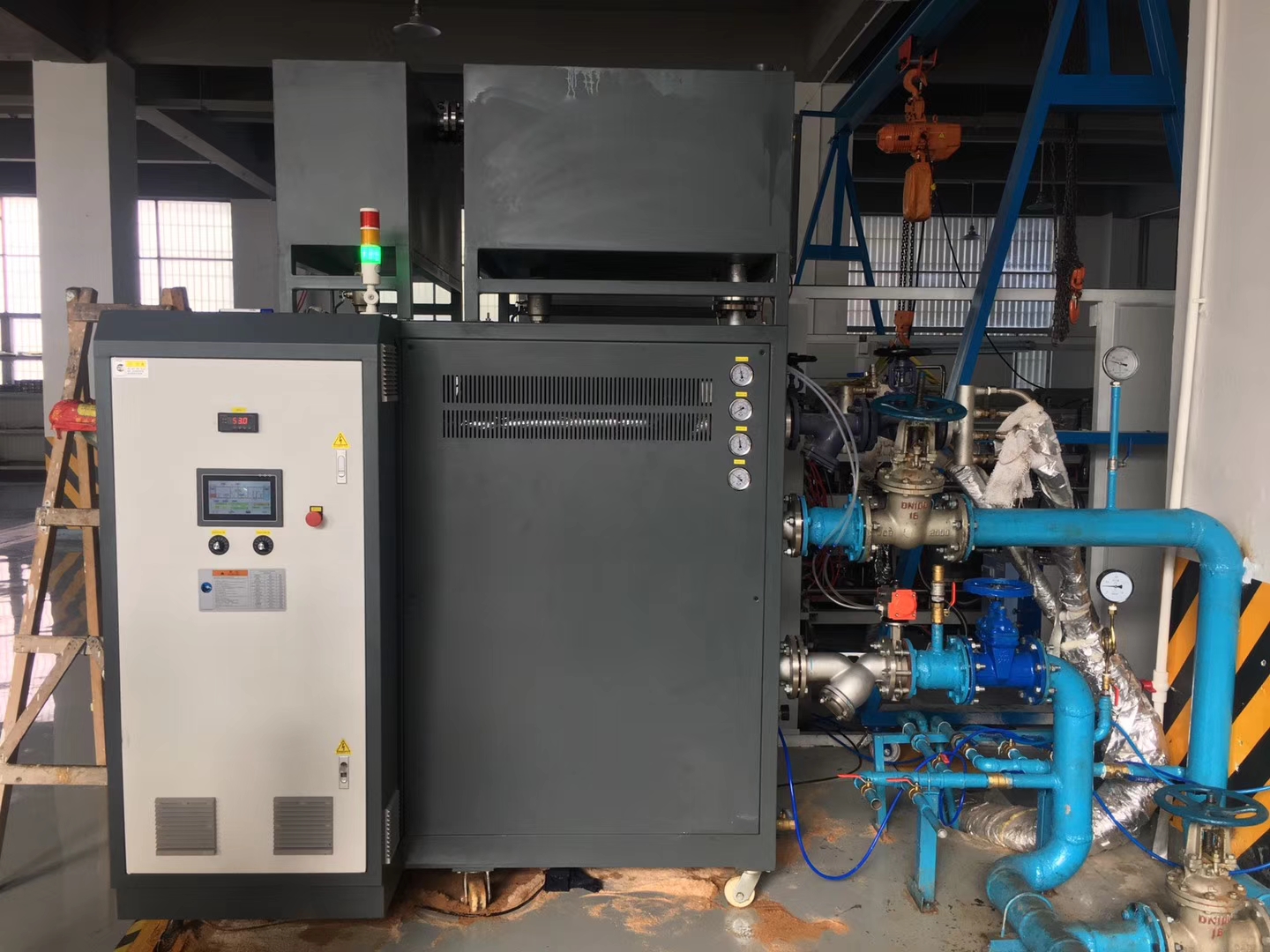 FRTP復(fù)合材料成型模溫機(jī)采用導(dǎo)熱油為傳熱介質(zhì),溫度可保持在300℃,控溫精度可控制在±0.1℃。FRTP復(fù)合材料模溫機(jī)主要